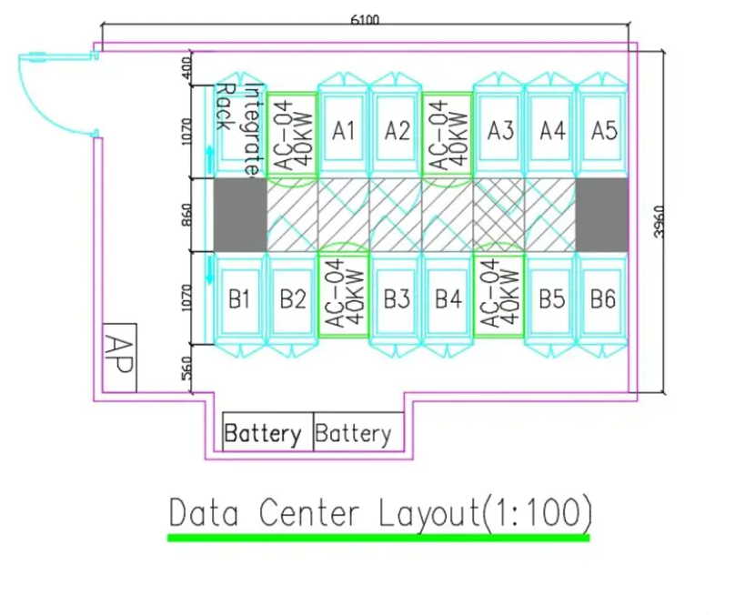 Double channel (with aisle containment) (L x W x H): L x 3,200 x 2,300 mm L x 3,200 x 2,400 mm L x 3,600 x 2,300 mm L x 3,600 x 2,400 mm Customized |